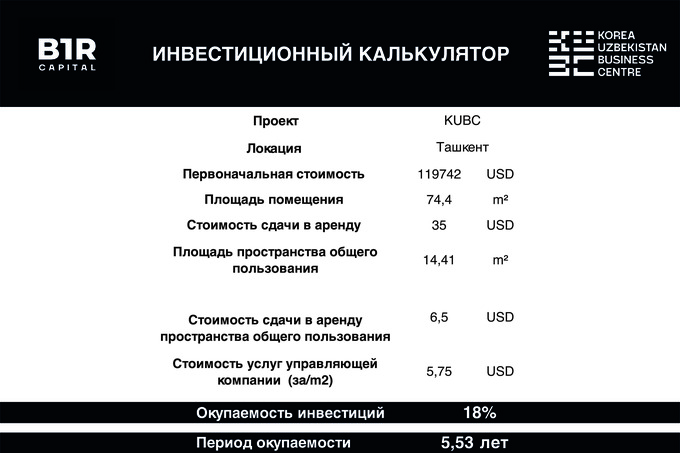 По расчетам аналитиков BIR Capital, прогнозный показатель возврата инвестиций (ROI) достигает 18%, что значительно выше текущей ставки по валютным вкладам в банках Узбекистана (средняя — 4%). Минимальный срок окупаемости вложений по данному проекту составляет 5,5 лет.