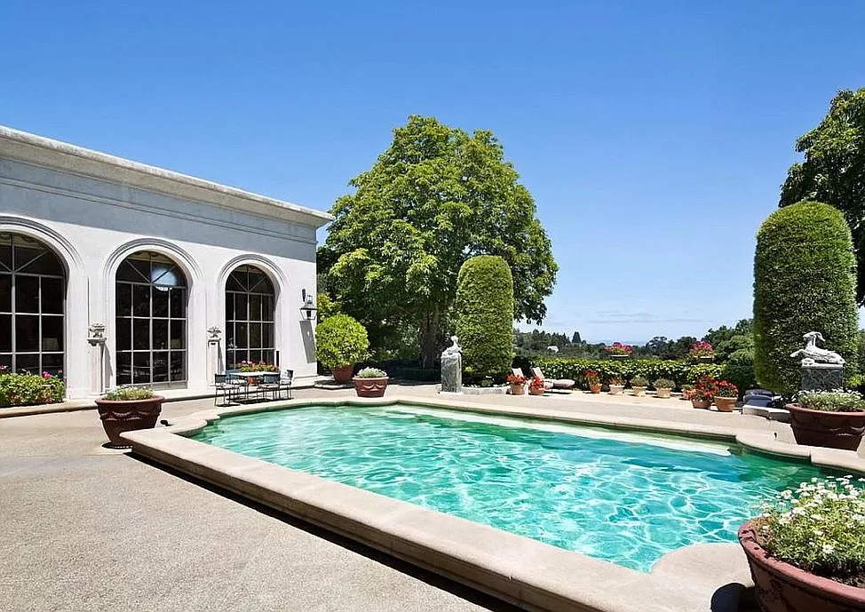 Объект недвижимости расположен в Калифорнии, в пригороде Сан-Франциско Хиллсборо. Дом располагается на участке в 47 акров (19 гектаров).