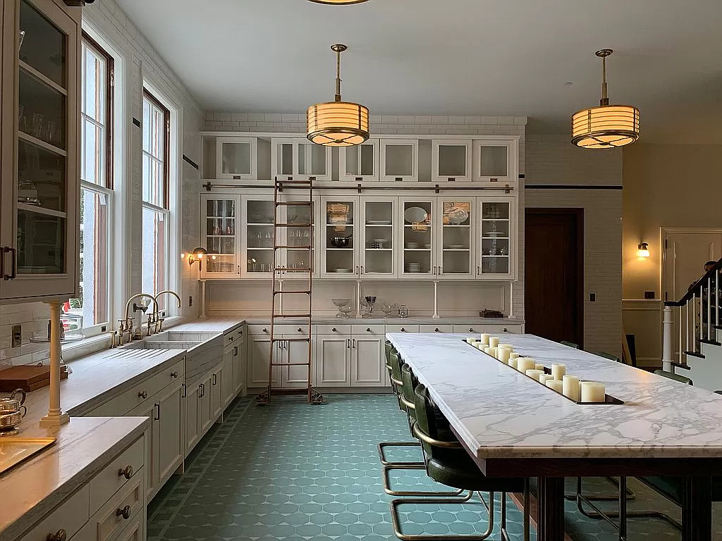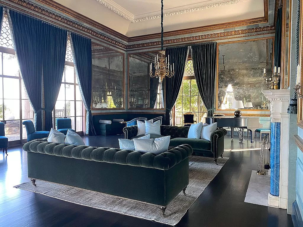 Общая площадь особняка, построенного в 1916 году, составляет почти 1,5 тыс. кв.м. Кроме семи комнат, в нём имеются библиотека, музыкальный зал, а также бассейн.