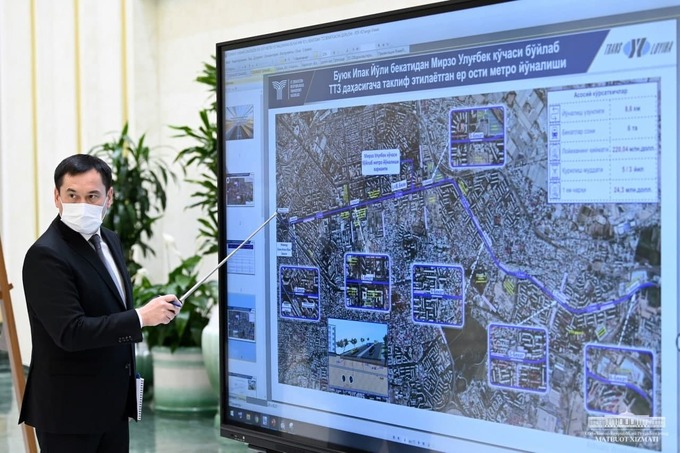 - первый — под проспектом Мирзо Улугбека. Длина участка составит 8,6 км, в сутки ожидаются 62 тыс. пассажиров;