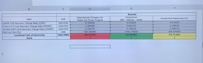 Консорциум предложил самую низкую нормированную стоимость электроэнергии в размере $33,67564 за МВт/ч. Она, помимо предложенных тарифов, учитывает эффективность тепловой электростанции.