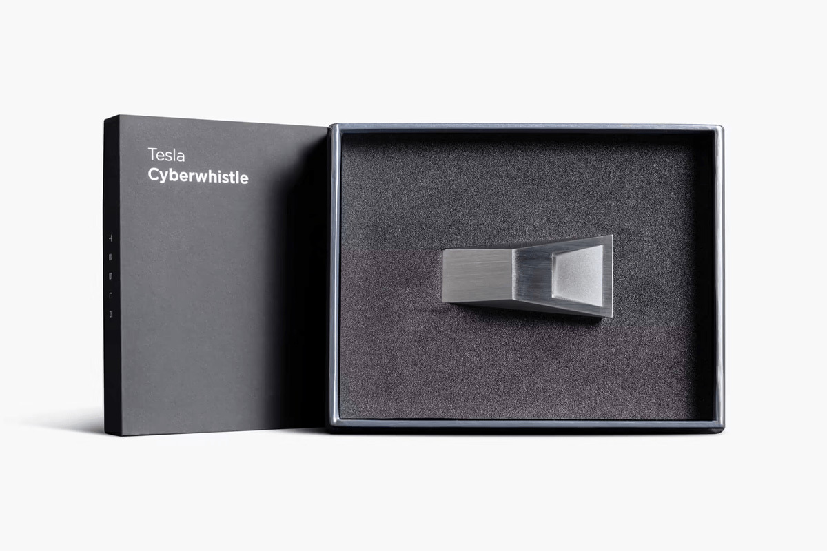 В интернет-магазине компании Cyberwhistle описывается как «премиальный коллекционный предмет», для дизайна которого за основу взят электропикап Cybertruck. Свисток выполнен из полированной нержавеющей стали.