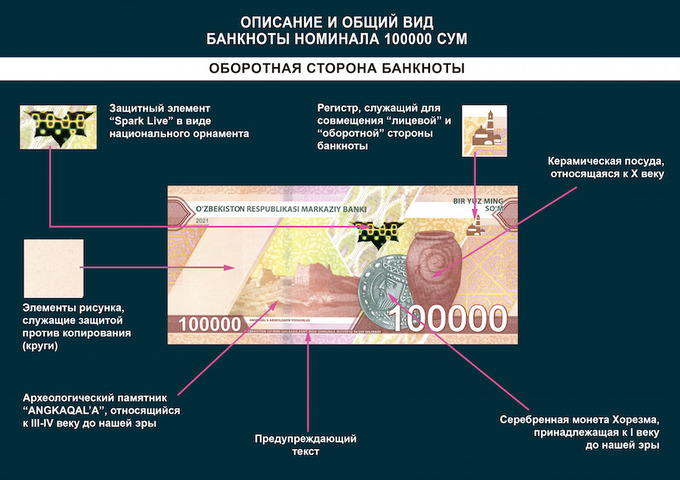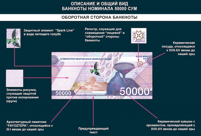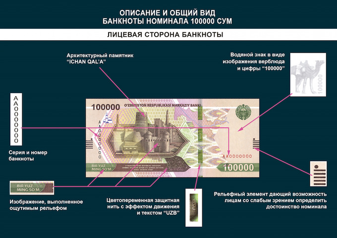 С 22 декабря Центральный банк выпускает в обращение новые банкноты достоинством 50 000 и 100 000 сумов, передает пресс-служба регулятора.