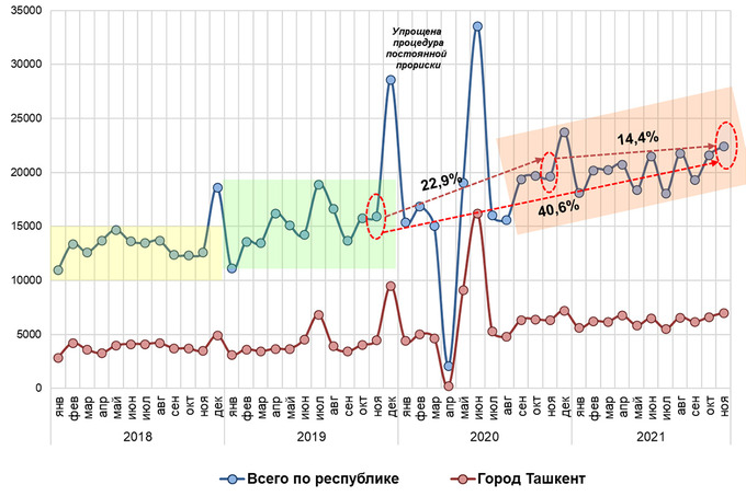 Больше всего активность увеличилась в Сурхандарье (+22,9%), Наманганской области (+17,3%) и Хорезме (+14,3%).