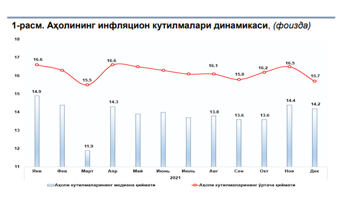 Несколько сократилось количество «пессимистов», ожидающих инфляции в 20% и выше, но увеличилась группа умеренно высоких ожиданий (на уровне 13−16%). Вместе с тем стало больше позитивно настроенных граждан, уверенных в сокращении инфляции до уровня ниже 8%.