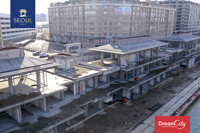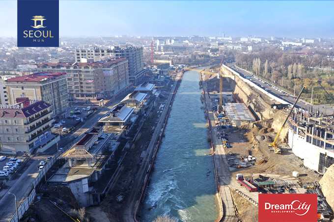 Вдоль улицы Сеул на двух берегах водоема возводится масштабный торгово-досуговый центр общей площадью 40 тысяч кв. м.