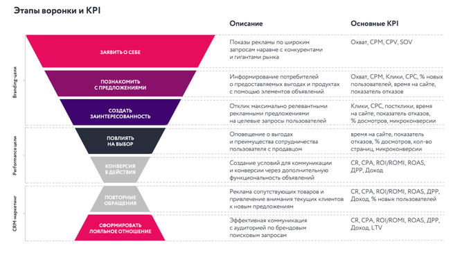 Воронка продаж. Она должна состоять только из тех этапов, которые можно измерить. Чем детальнее будет воронка, тем выше конверсия и, соответственно, продажи. В примере указаны блоки воронки, которые должны делиться на этапы.
