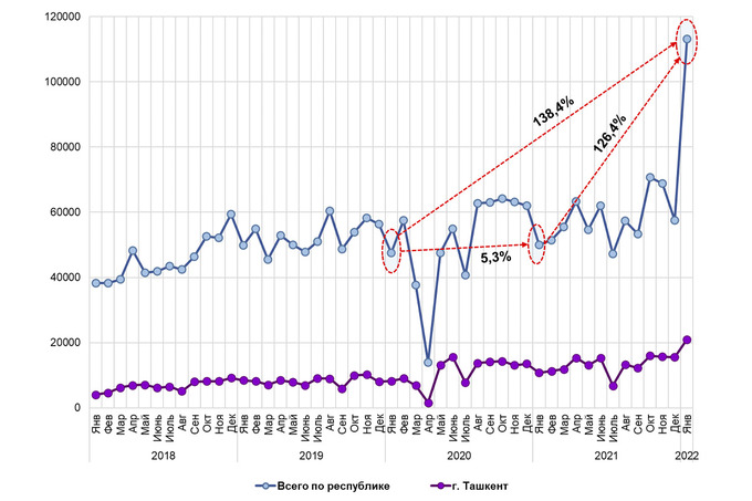 Эксперты связывают бурный рост со снижением расходов на регистрацию сделок с авто. В частности, с 1 января отменили сбор за приобретение и временный ввоз в Узбекистан автотранспорта, а госпошлина за оформление купли-продажи снижена до 3 БРВ (810 000 сумов).