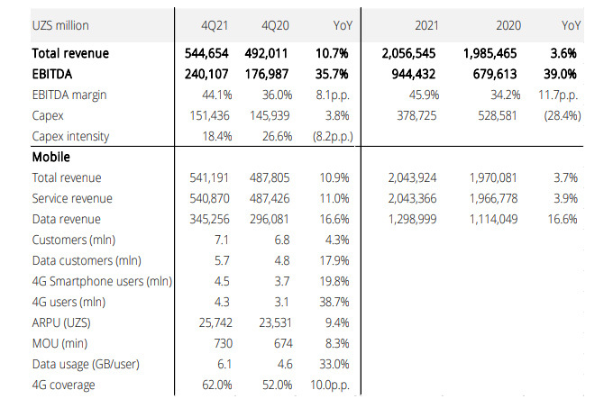 Выручка компании растёт уже третий квартал подряд. За октябрь-декабрь она составила 544,6 млрд сумов — на 10,7% больше по отношению к IV кварталу 2020 года. Общегодовая выручка превзошла прошлогоднюю на 3,6% и достигла 2,05 трлн сумов.