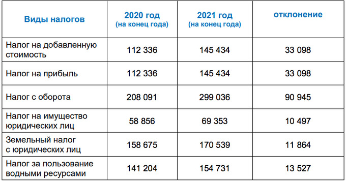 По налогу за пользование водными ресурсами поступило 684 млрд сумов (+42,9%). Сыграла индексация ставок на 15% (для отдельных отраслей — на 30%) и уплата сельхозпредприятиями налога за 2020 год в начале 2021 года.