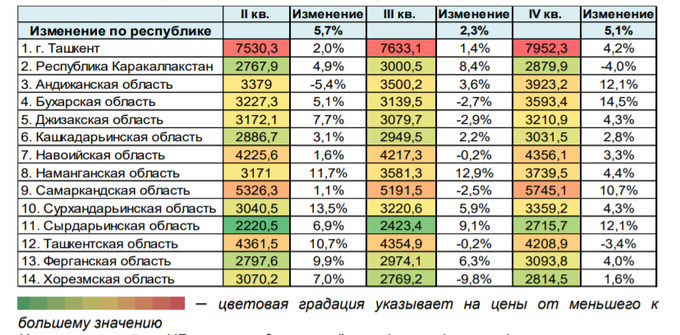 Средние цены на вторичном рынке жилья за II-IV кварталы 2021 года (тыс. сум; % изменение квартал к кварталу):