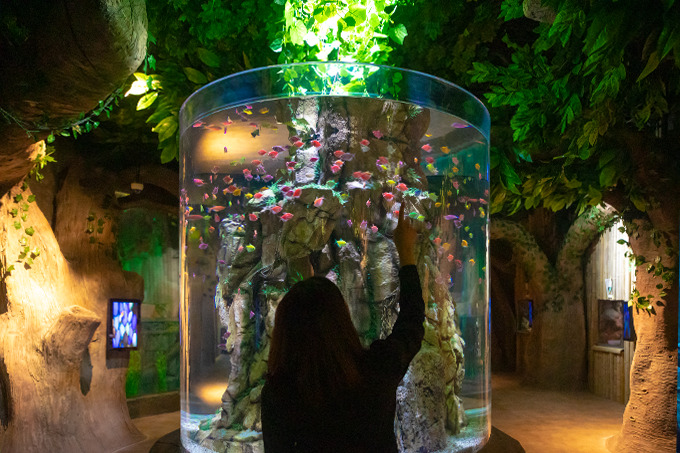 Интересное и то, что удивит всех, от мала до велика — это необычный подводный тоннель длиной в 20 м, обеспечивающий эффект присутствия и ощущения контакта посетителей с рыбами.
