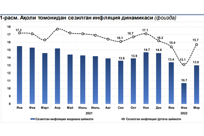 - Семьи с месячным доходом ниже 2 млн сумов столкнулись с подорожанием продовольственной части своей потребительской корзины за год на 15,7% — на 1,5% выше января. Рост цен на непродовольственные товары составил 7,4% (+0,4%).