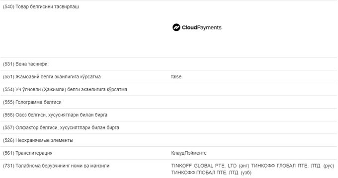 Tinkoff Global Pte. Ltd. подала заявку на регистрацию в Узбекистане товарного знака CloudPayments. Информация об этом появилась в базе данных «Интеллектуал мулк» Минюста.