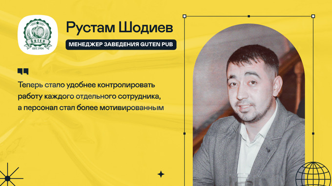 «Главной целью подключения Choyga.uz было отслеживание отзывов, чтобы понимать, как работает персонал, выявить моменты, над которыми следует поработать. Отзывы и онлайн-чаевые поступают каждый день. Теперь стало удобнее контролировать работу каждого отдельного сотрудника, а персонал стал более мотивированным и заинтересованным в хорошем обслуживании. Также один из важных моментов — не нужно подходить к каждому гостю, отвлекать его, спрашивать, все ли понравилось. Все можно отследить с помощью сервиса, ведь там поступают качественные отзывы, а посетители узнают о Choyga.uz, когда видят QR-код в чеке. Я рекомендую подключаться к сервису тем, кто, как и я, все время в работе, но хочет оставаться в курсе всего, что происходит в заведении».