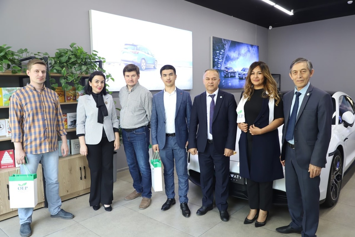Руководство Экопартии посетило салон электромобилей 23 апреля. Основатель Megawatt Motors Улугбек Ходжамбердиев ознакомил гостей с деятельностью компании, а также обсудил с ними планы на будущее развитие бизнеса.