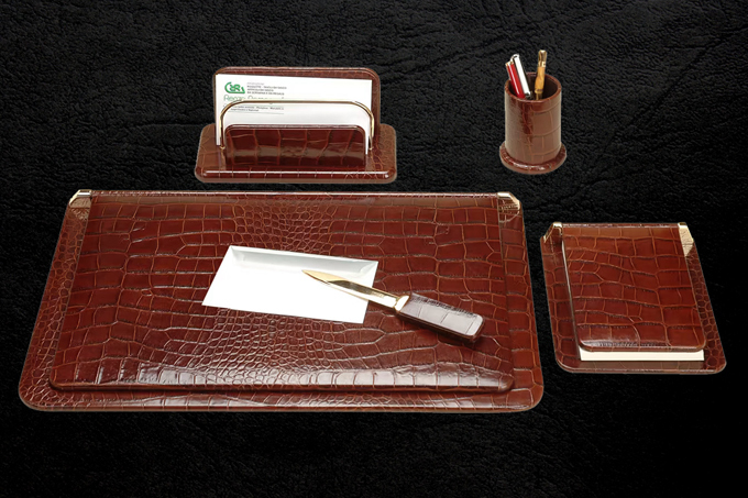 Тем, кто проводит рабочий день за письменным столом, понравится набор настольных принадлежностей от компании Renzo Romagnoli. Этот итальянский бренд давно завоевал широкую известность благодаря элитной продукции, которой присущи такие качества, как практичность и сдержанный стиль. Все изделия бренда выполнены вручную из натуральной телячьей кожи и декорированы золочеными вставками. Купить настольные наборы Renzo Romagnoli — означает порадовать дорогого человека по-настоящему статусным подарком.