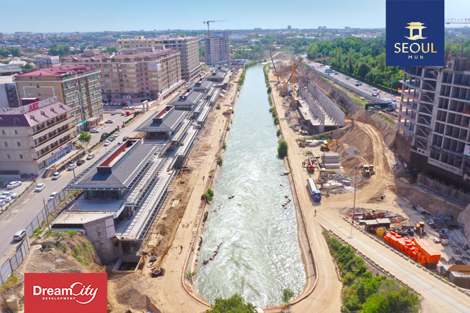 Проект масштабной набережной Seoul Mun стремительно возводится вдоль канала Бурджар в центре Ташкента. Готовые решения реализуются здесь для успешного бизнеса: удобное расположение, особая концепция открытого пространства, террасы, продуманная инфраструктура и услуги управляющей компании.