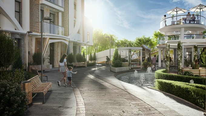 Во дворе будет находиться трехуровневая лаунж-зона — своеобразная смотровая площадка, которую будет обтекать водопад в виде воронки. Для спокойного отдыха на воздухе и прогулок здесь будет функционировать зона с беседками. А самые маленькие резиденты смогут проводить время и заводить друзей на современной безопасной детской площадке.