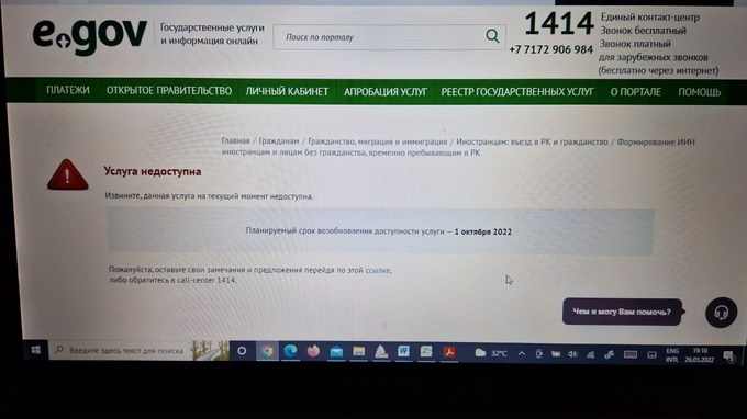 Позже сообщение об ошибке изменили, убрав оттуда дату. Теперь в нём говорится, что онлайн-выдача ИИН будет восстановлена «в ближайшее время». Желающих отсылают в филиалы госкорпорации «Правительство для граждан» — оператора госуслуг.