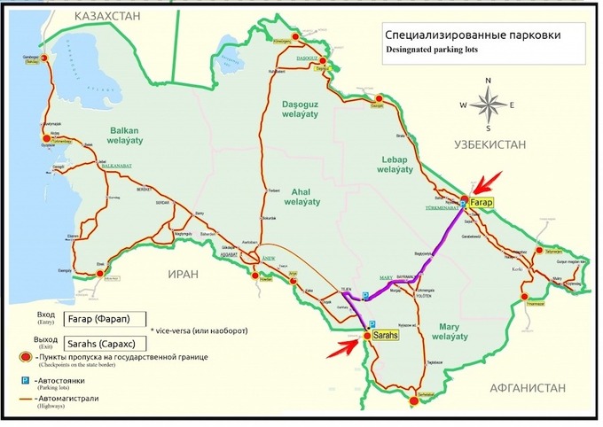 Маршрут будет проходить через пункты пропуска «Фарап» на границе в Узбекистаном и «Серахс» — с Ираном.