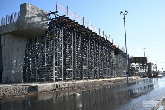 Надземное метро строится от массива Куйлюк до 5-й станции Сергелийской ветки. Завершена установка более 200 опор, идет строительство эстакад.