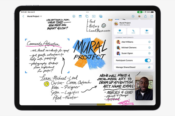 Кроме этого, на iPad Pro можно будет выделять приложениям виртуальную память за счёт внутреннего хранилища. Объём доступной ОЗУ расширяется до 16 ГБ. Также в систему добавлен новый инструмент для совместной работы — Freeform.