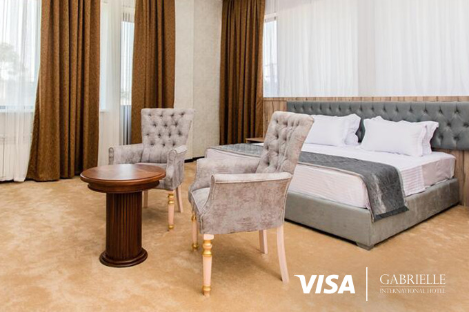 В Gabrielle Hotel клиенты получают 10% скидки на бронирование номеров класса королевский люкс или апартаментов. Gabrielle Hotel — это современный семейный отель в центре Ташкента. Здесь гости могут насладиться уютным дизайном в стиле лофт, посетить ресторан, тренажерный зал или спа-зону с сауной и бассейном, отдохнуть на летней террасе или провести деловую встречу в конференц-зале.