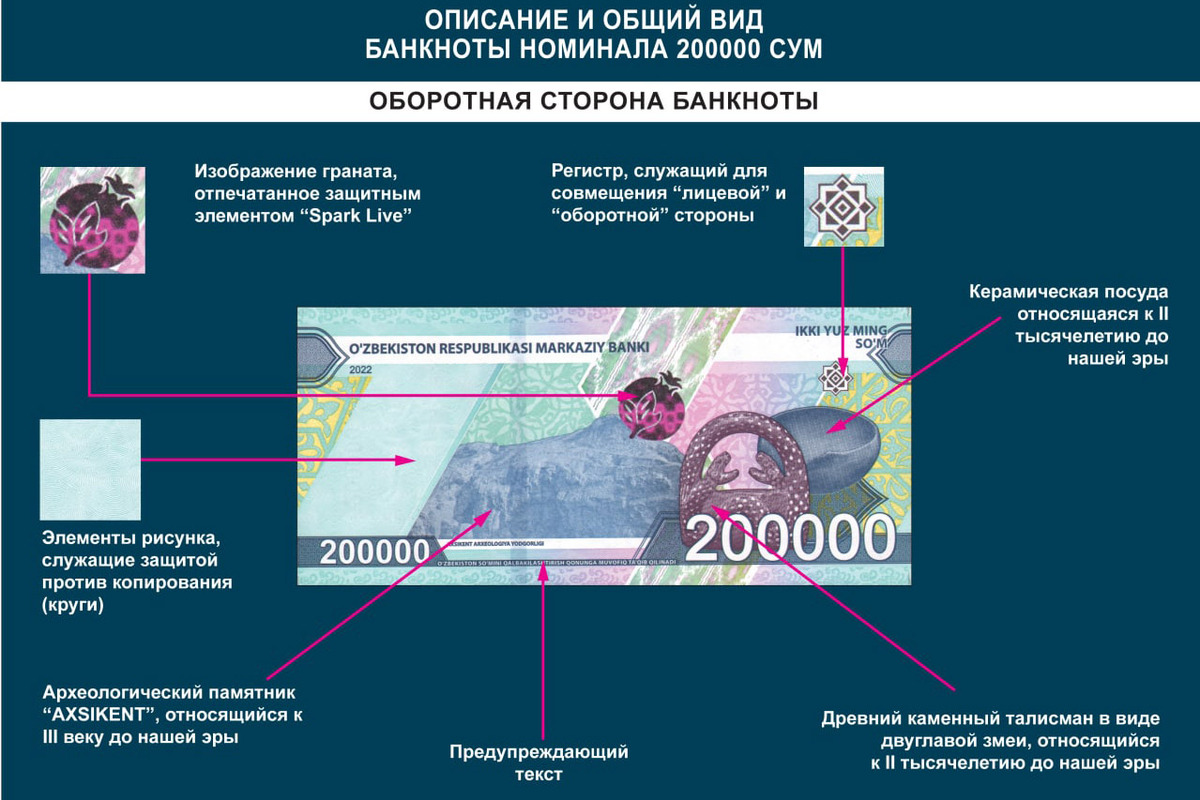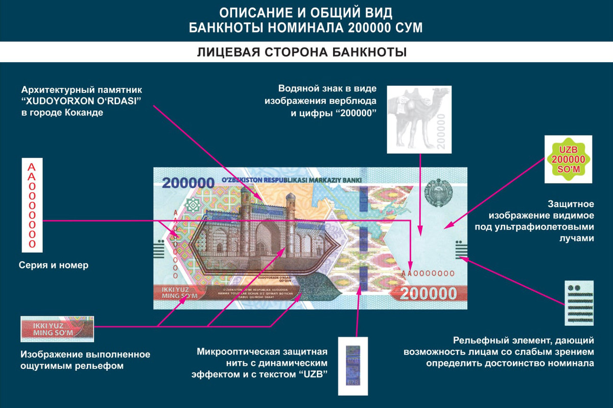 Выпуск в оборот купюр номиналом 200 тысяч сумов анонсировал глава ЦБ Мамаризо Нурмуратов в начале года. Однако тогда он называл в качестве предполагаемой даты 2024 год.
