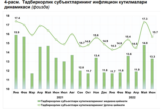 Инфляционные ожидания узбекистанцев во втором квартале заметно выросли, следует из отчёта Центробанка.