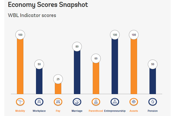 Эксперты высоко оценили законодательные уровни свободы передвижения для женщин, владения имуществом и ведения бизнеса. Однако в других направлениях — трудовом, брачном, семейном — требуется доработка.