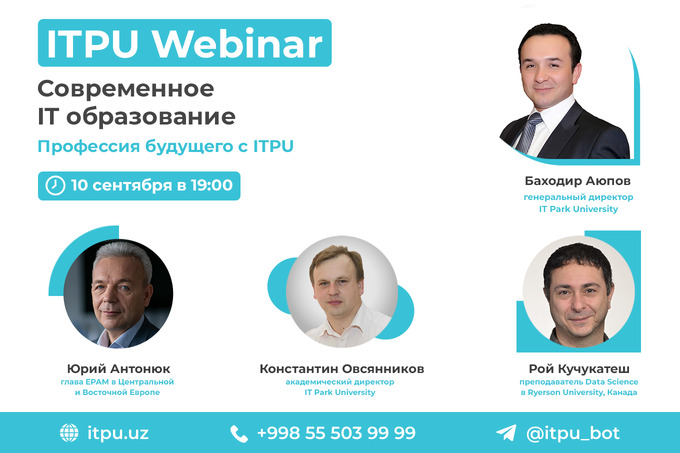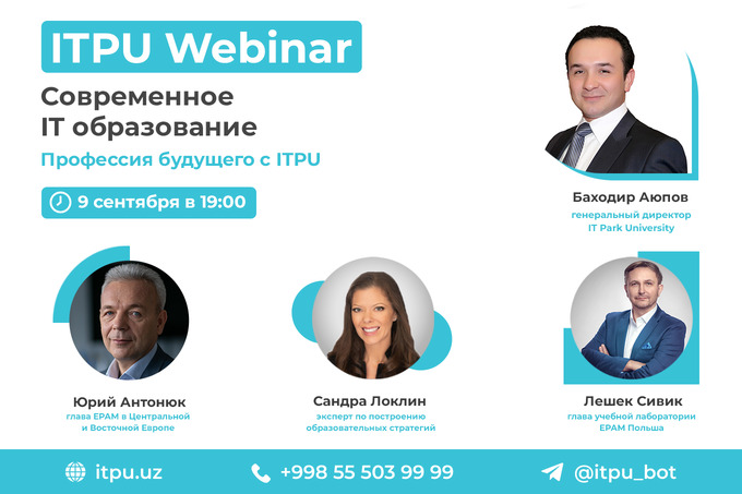 9 и 10 сентября IT Park University проведет вебинары на тему «Современное IT образование. Получи профессию будущего с ITPU» для абитуриентов, которые заинтересованы в получении качественного высшего образования.
