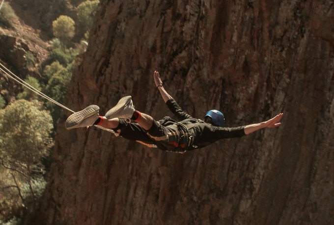 Перед прыжком надо натянуть базовые веревки, к которым будет крепиться та, с которой прыгнет человек. Сделать это можно между двумя высокими скалами или плавно увести ее с высоты вниз.