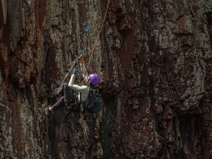 «Все тщательно изучали почти три года — технику безопасности, углы, траекторию, оказание первой медицинской помощи и многое другое. По сути учились на основе базовых знаний альпинизма, ведь это такой же срыв, но несколько мягче, поэтому и веревки хватает не на два или три раза, а на десятки раз больше», — говорит Комилжон.