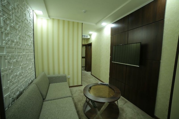 Девятиэтажное здание построено в 1980 году и располагается на центральной улице Шарафа Рашидова. В 4-звёздочном отеле есть 130 номеров бассейн, ресторан и два бизнес-зала.