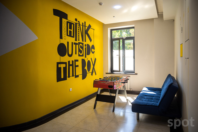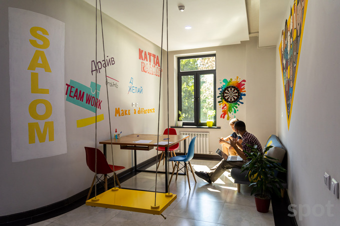 «Мы реализуем идеи по мере необходимости. Например, в самом начале сломали много стен, чтобы сделать опенспейс. Потом пришла идея их разрисовать. Провели конкурс среди студентов Национального института художеств и дизайна имени Камолиддина Бехзода. Они бесплатно расписали почти все стены. Конечно, мы оплатили все расходные материалы, выделили бюджет на организацию и проведение конкурса, подарки.