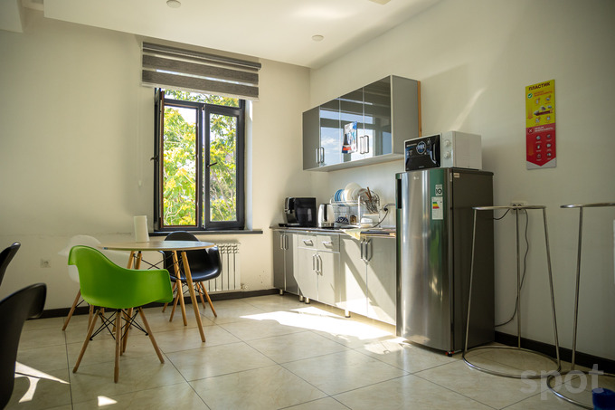 На каждом этаже есть небольшая кухня с кофепоинтом. Дважды в неделю сотрудников угощают свежими фруктами за счет компании. В конце коридора — баки для сортировки мусора. Это результат коллаборации TBC с Hashar Week. TBC настолько «топят» за экологию, что даже сохранили дерево прямо внутри офиса.
