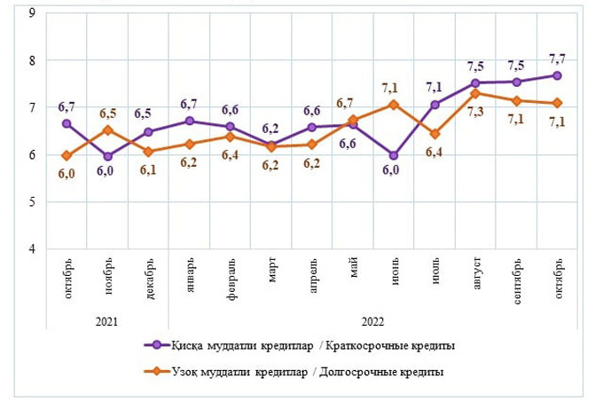 Ставки по долгосрочным кредитам в октябре немного поднялись и составили 22,6%. В частности, займы на срок 5−10 лет подорожали на процентный пункт (до 22,4%), в то время как кредиты на срок сверх этого немного подешевели.