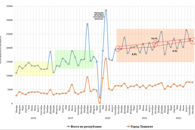 Так, средняя стоимость аренды в Ташкенте на октябрь составляла $10,5 за квадратный метр. Только за один месяц расценки выросли на 17%, а с начала года — почти в полтора раза.