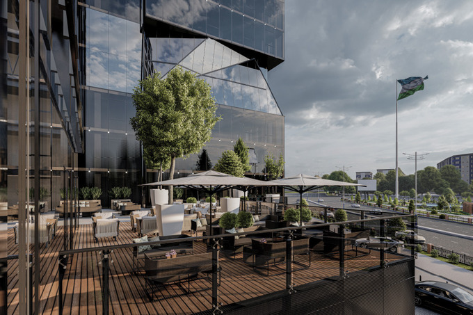Самая знаковая и примечательная часть концепции — рекреационная зона комплекса. Это пространство на 2000 кв. м, которое объединяет этаж между деловой и жилой башнями. Формат рекреационной зоны — прямая отсылка к философии Live. Work. Play. — на этом этаже есть доступ ко всем потребностям современного жителя мегаполиса. На втором этаже на просторах рекреационной зоны разместятся модульный коворкинг, фитнес-центр, столовая, террасы, зал для переговоров, комнаты для молитвы, кофейня, спа-зона, ресторан и даже бассейн. Всё это будет доступно в клубном формате жителям и резидентам жилой и бизнес башен.