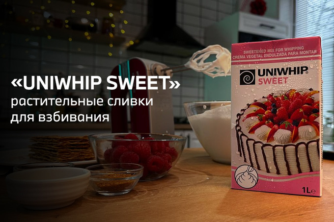 Компания постоянно работает над тем, чтобы расширять ассортимент продукции. И вот недавно добавились подслащенные растительные сливки для взбивания Uniwhip Sweet, которые используются для производства тортов, пирожных и других десертов. Практически незаменимый продукт в создании кондитерских шедевров. Производство — Дания.