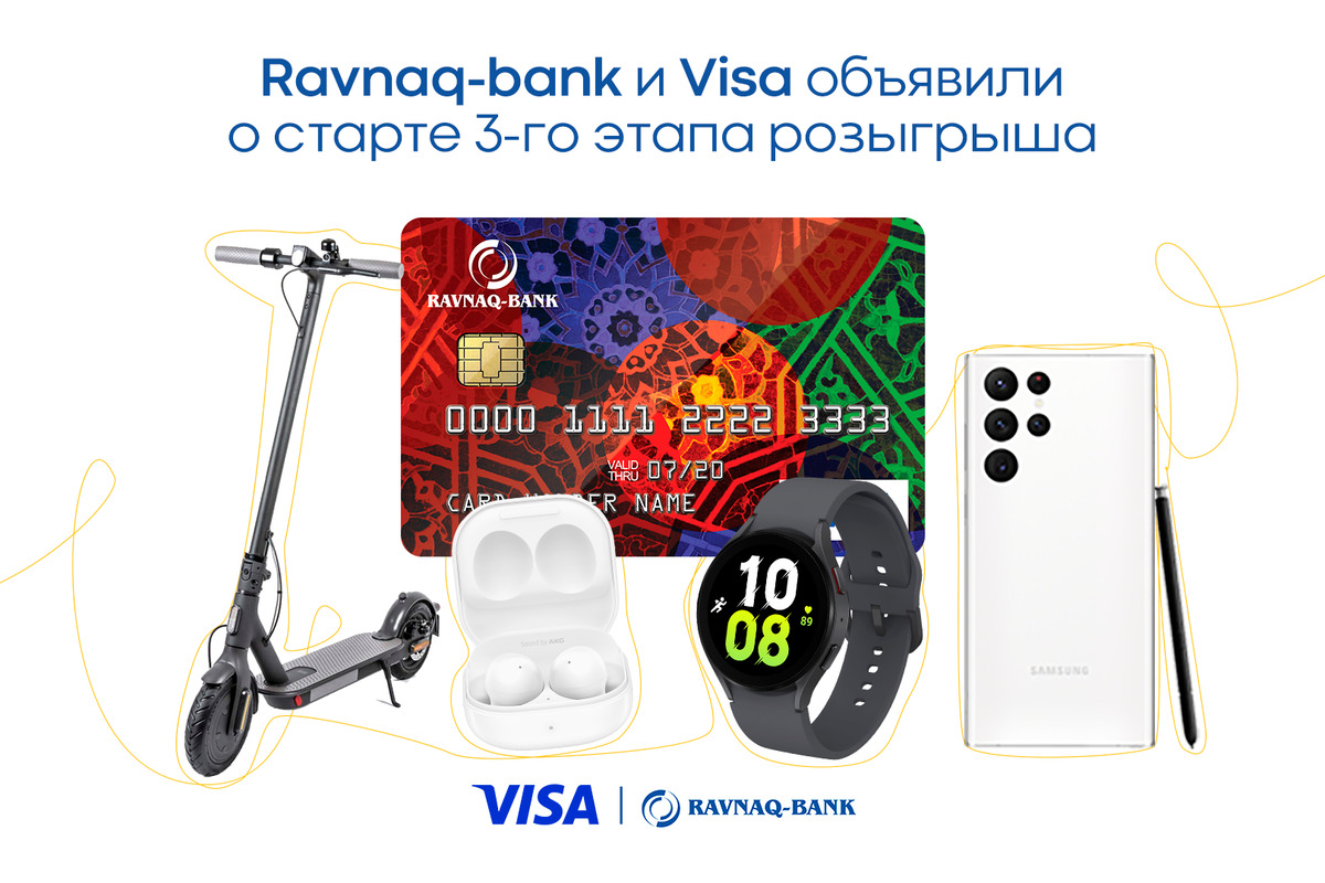 С 1 июня стартует заключительный третий промежуток акции от Ravnaq-bank при поддержке Visa. Банк разыграет призы от Samsung среди держателей карт Visa, которые совершили торгово-платёжные транзакции в течение трёх промежутков.