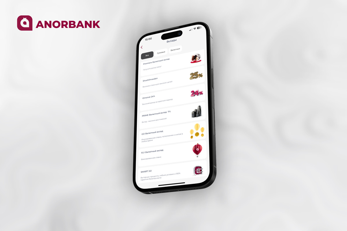 В приложении представлена линейка выгодных вкладов от ANORBANK с подробной информацией о них. Клиенты могут выбрать наиболее подходящий вид вклада и открыть его онлайн.