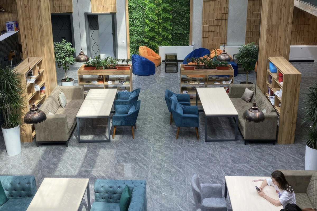 [hub] — коворкинг в центре Ташкента с рабочей зоной на 30 мест, переговорной комнатой на 8 человек, двумя небольшими офисами, отдельной Zoom-комнатой для онлайн-встреч, лаундж-зоной, кухней и душевой. Пространство рассчитано на индивидуальную работу и небольшие команды.