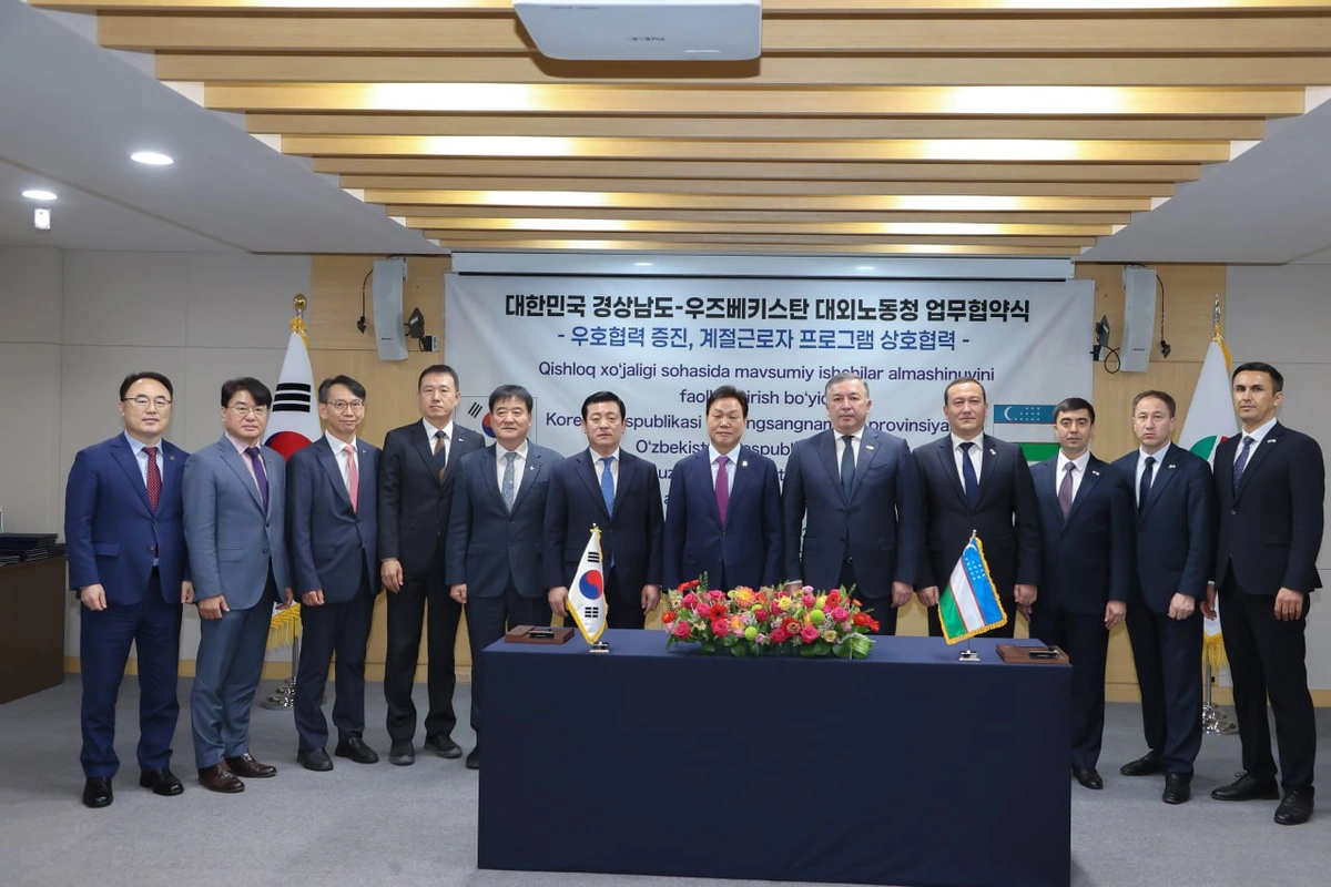 Губернатор провинции Кёнсан-намдо Пак Ван-су принял узбекистанскую делегацию во главе с директором ведомства Бехзодом Мусаевым. По итогам переговоров стороны подписали соглашение о привлечении сезонной рабочей силы в сельское хозяйство.