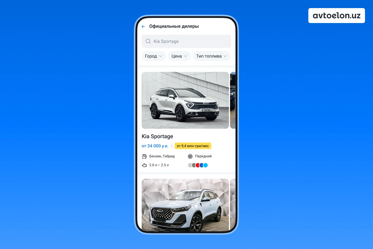 Обычная история: Самандар мечтает о новом BYD, но не знает, где и как лучше купить. Дядя посоветовал поискать онлайн на Avtoelon.uz. Первое, что он заметил, — на главном экране появился новый раздел «Официальные дилеры». Самандар выбрал его — открывается поиск с фильтрами и лента с объявлениями с удобным дизайном. Сразу видна вся информация об авто, сумма кредита. Фотографии стали больше, их можно листать в галерее, не заходя в само объявление. Все в одной ленте: разные предложения по новым авто, кредитным условиям. Можно прицениться и выбрать, сидя на диване попивая чай.