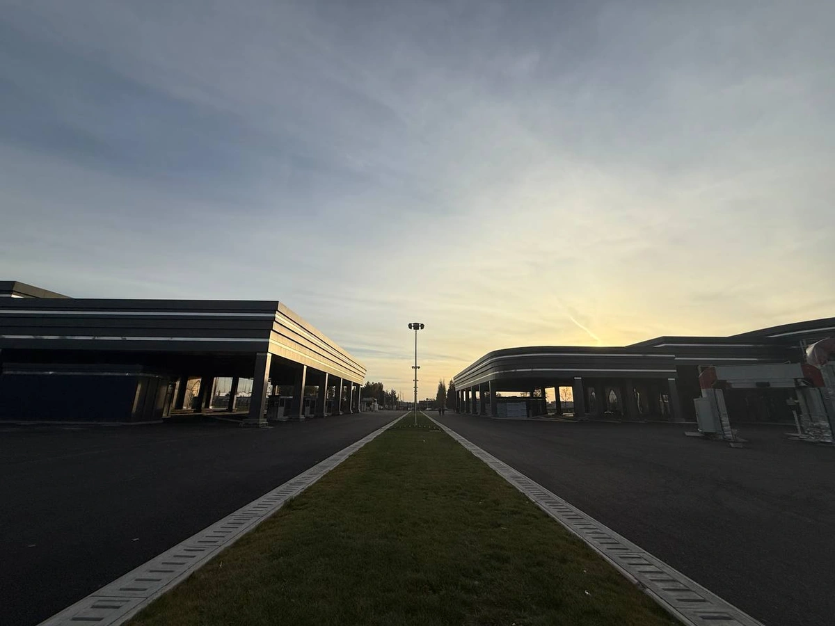 Для предотвращения очередей на посту построено 16 автомобильных полос, автобусы также будут двигаться по отдельным полосам.
