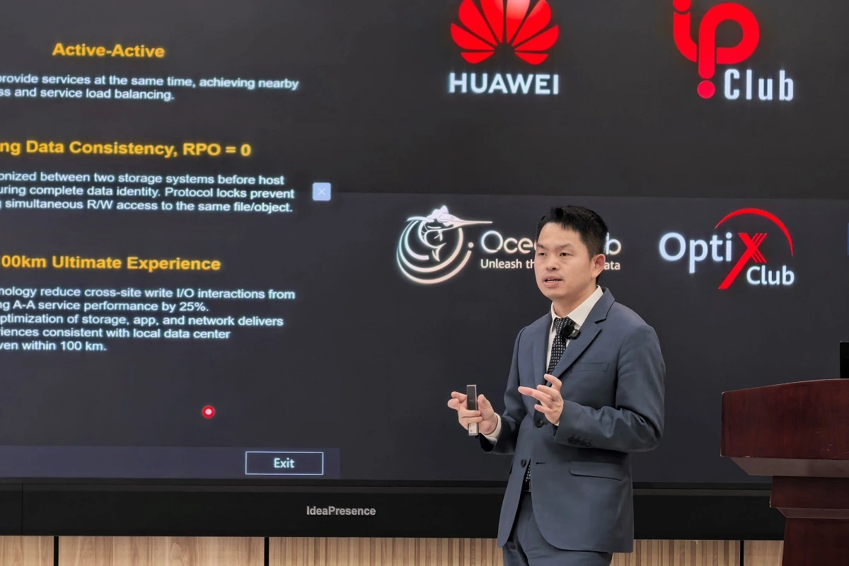 Альфред Ву, эксперт по системам хранения Huawei регионе Ближнего Востока и Центральной Азии, раскрыл тему повышения продуктивности систем хранения данных с All-flash Ocean Dorado следующего поколения. Он отметил обновленную архитектуру и надежность решения, а также использование ИИ агента, позволяющего запускать интеллектуальный двойник DataMaster. ИИ-агент для защиты от программ-вымогателей управляет всем процессом мониторинга безопасности сети, включая интеллектуальное определение рисков, автоматическую настройку политик защиты, обнаружение и реагирование в реальном времени, а также внедрение оптимальных политик восстановления. Данные передовые возможности означают, что защита от программ-вымогателей развертывается за одну минуту, атаки блокируются с нулевой задержкой, а данные восстанавливаются за считанные минуты.