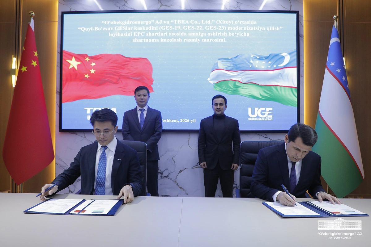 Корпорация TBEA 5 февраля подписала соглашение с «Узбекгидроэнерго» по проекту модернизации трех гидроэлектростанций Нижне-Бозсуйского каскада в Ташкентской области. Партнеры обновят ГЭС-19, ГЭС-22 и ГЭС-23 на условиях EPC («под ключ»).