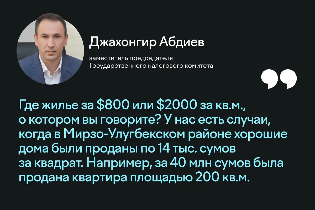 Более половины работников отрасли продолжают трудиться неформально, а на рынке фиксируются массовые случаи занижения стоимости жилья: десятки тысяч квартир оформлялись по цене менее 1,2 млн сумов за квадратный метр.